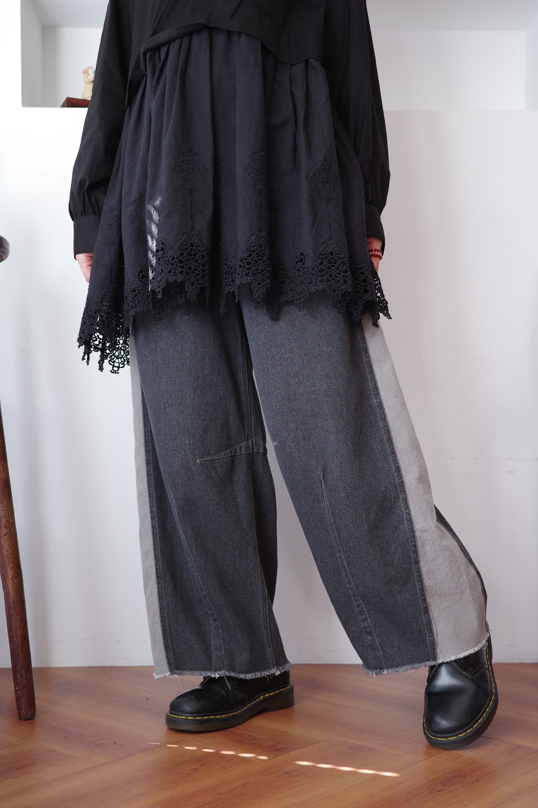 大腿兩側異材質拼接, 視覺上讓腿的比例看起來更細更修長!!