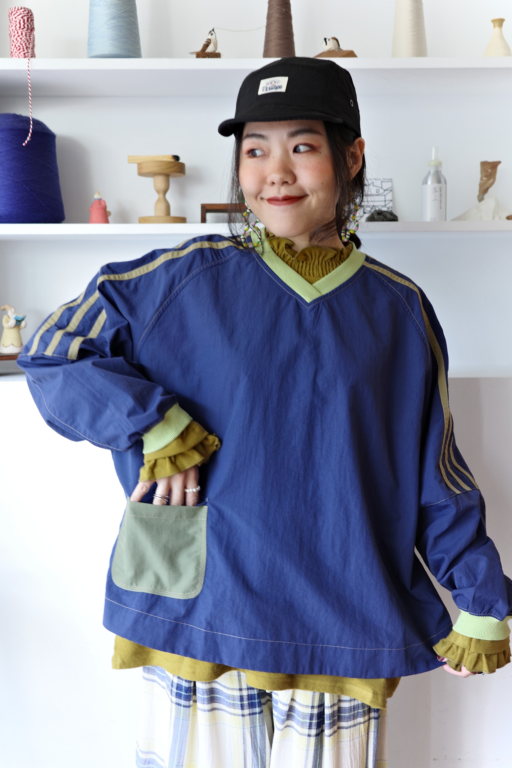 布料防風,袖口羅紋設計,單側跳色拼接口袋,