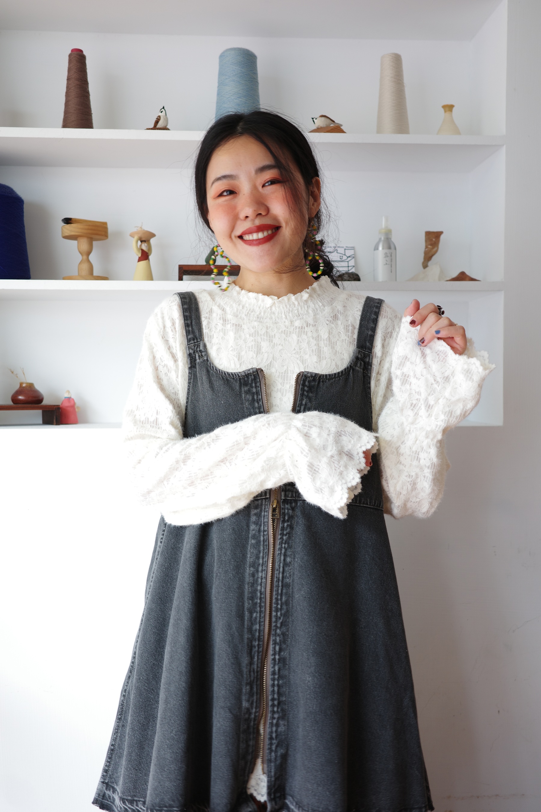 𓏭木耳抽鬚花邊拼接純色襯衫