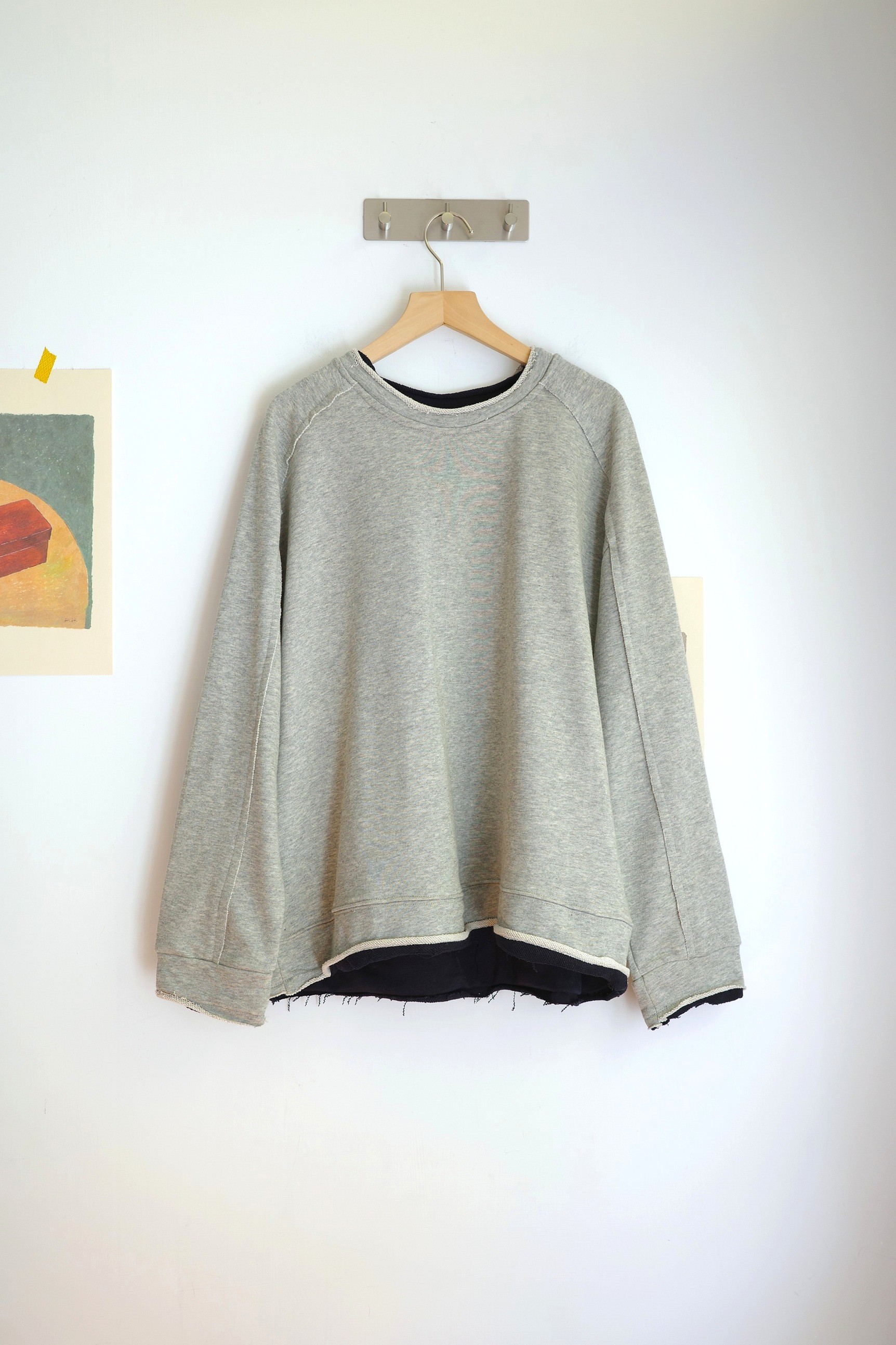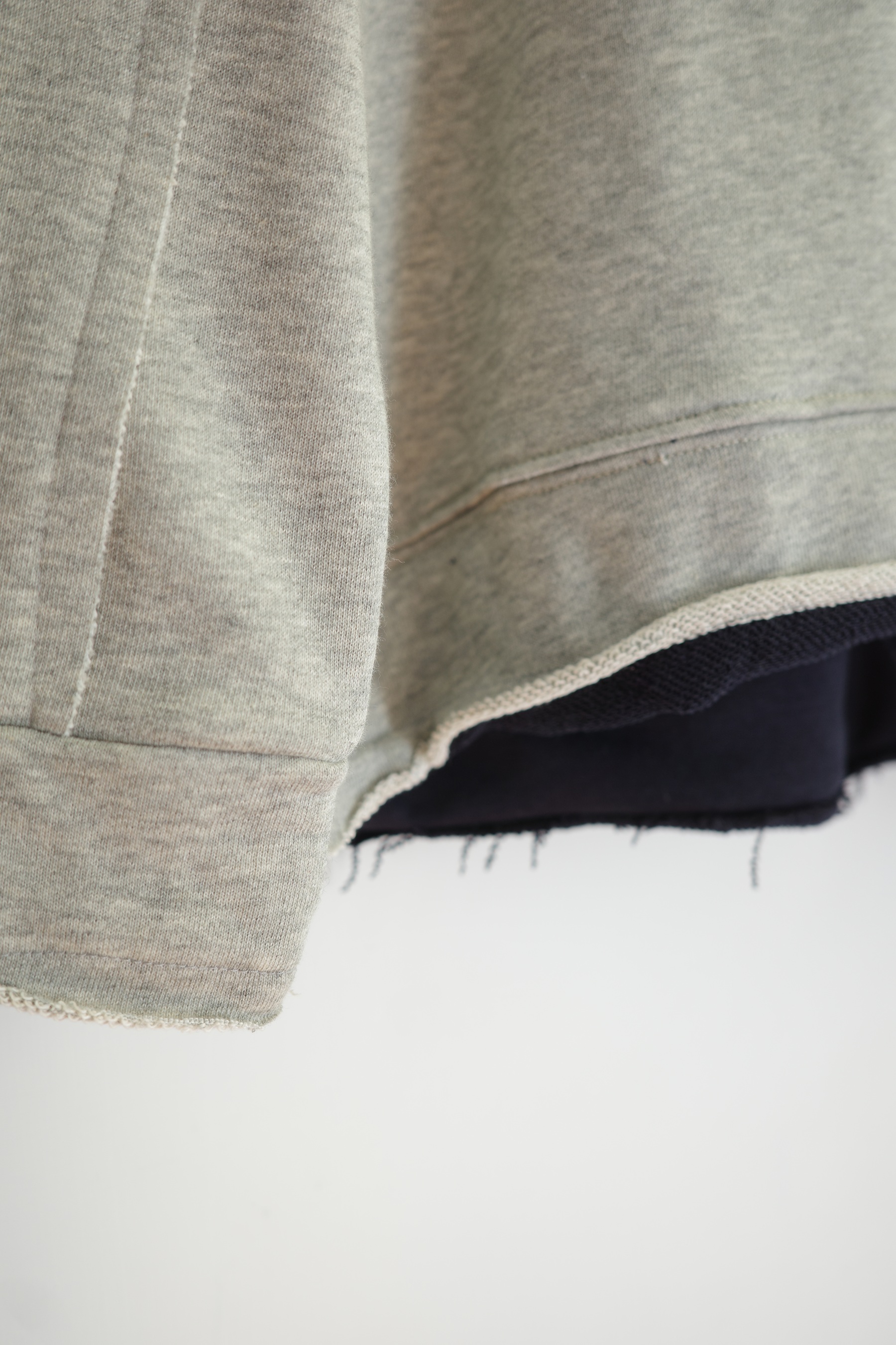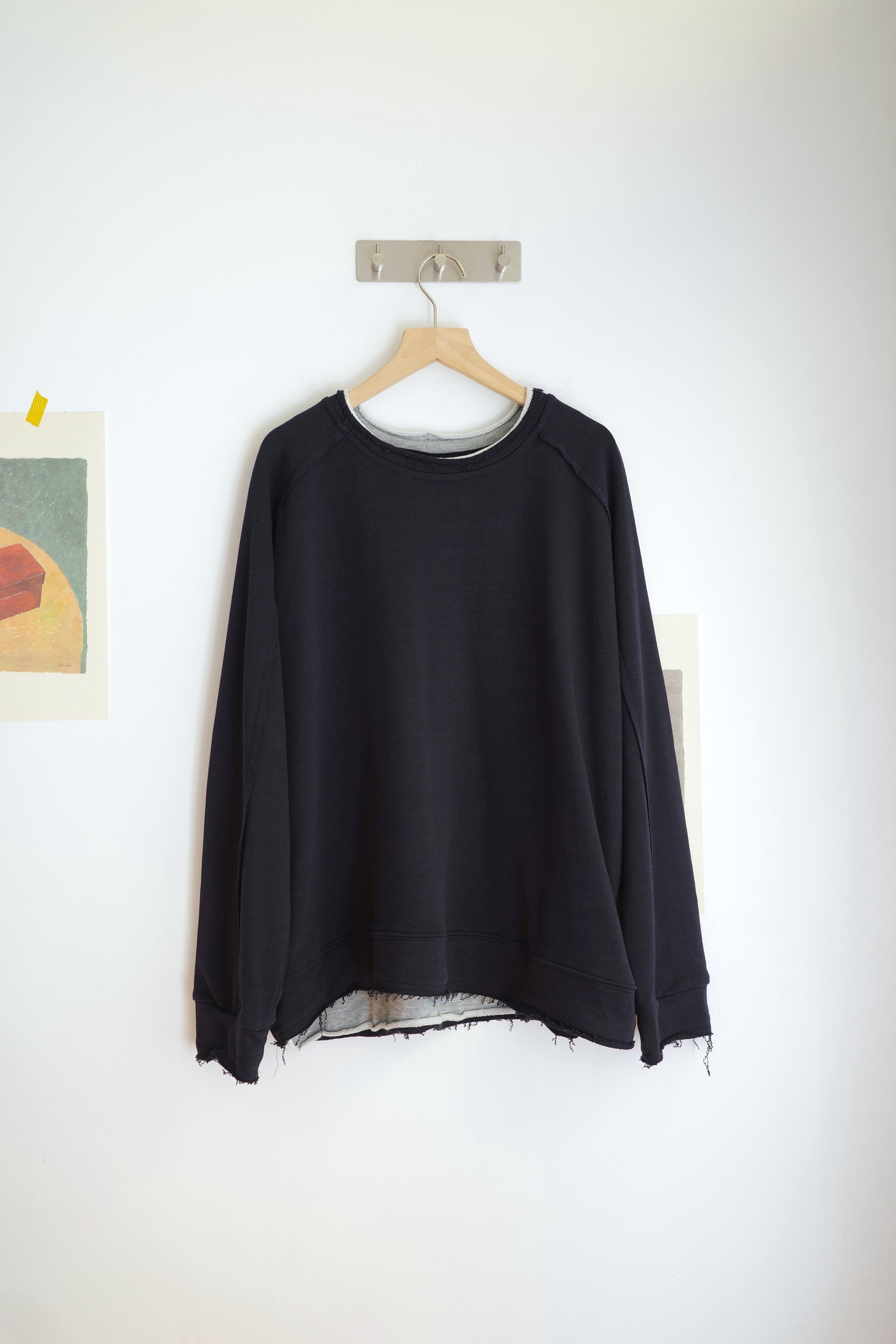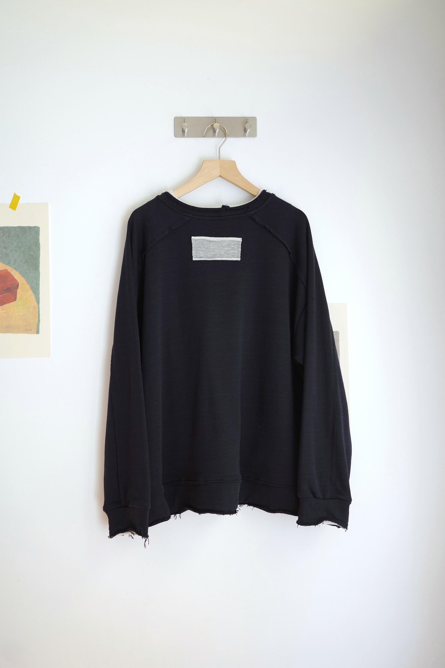 簡約的素面大學T,利用領口、袖口及下擺跳色雙層捲邊點綴,