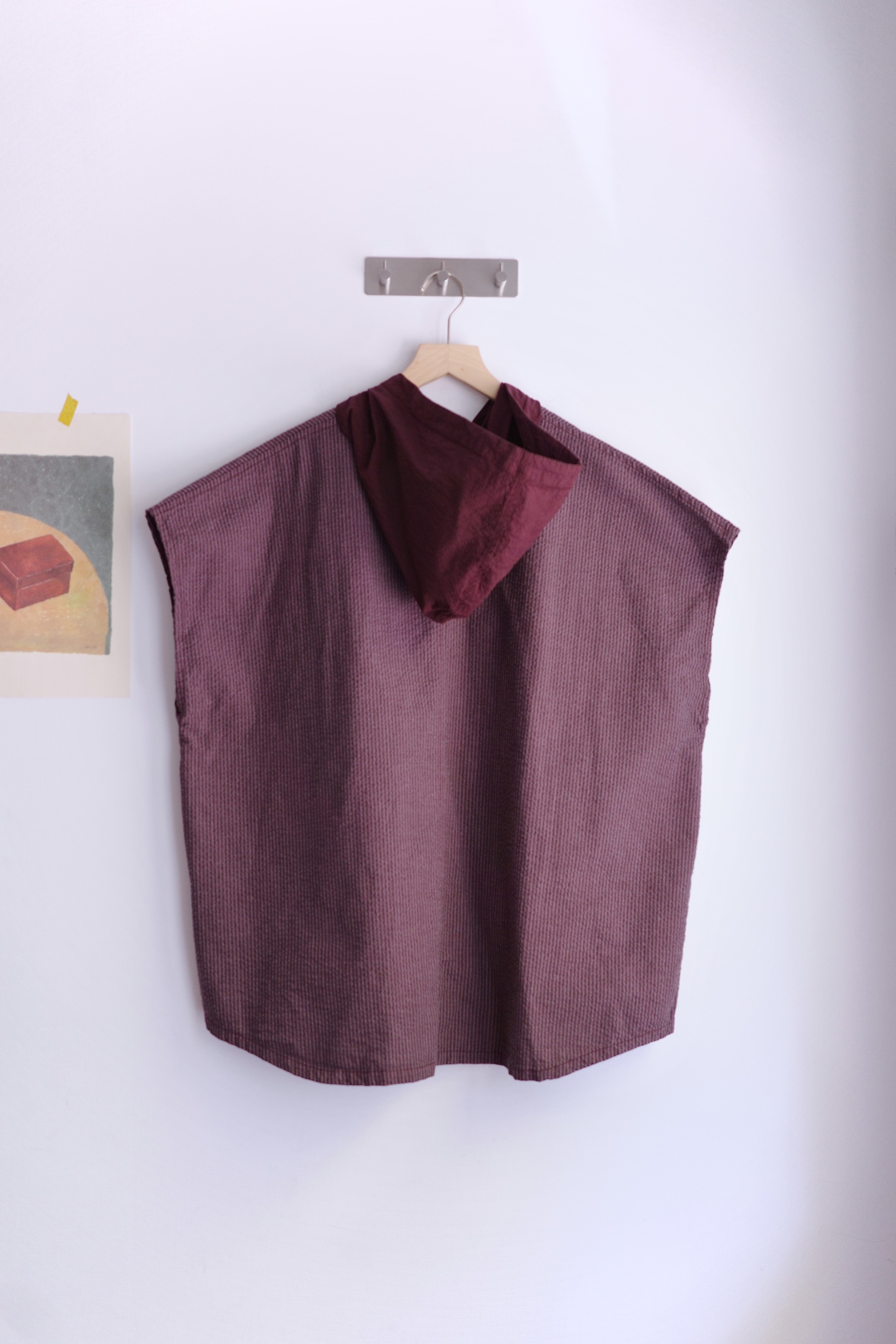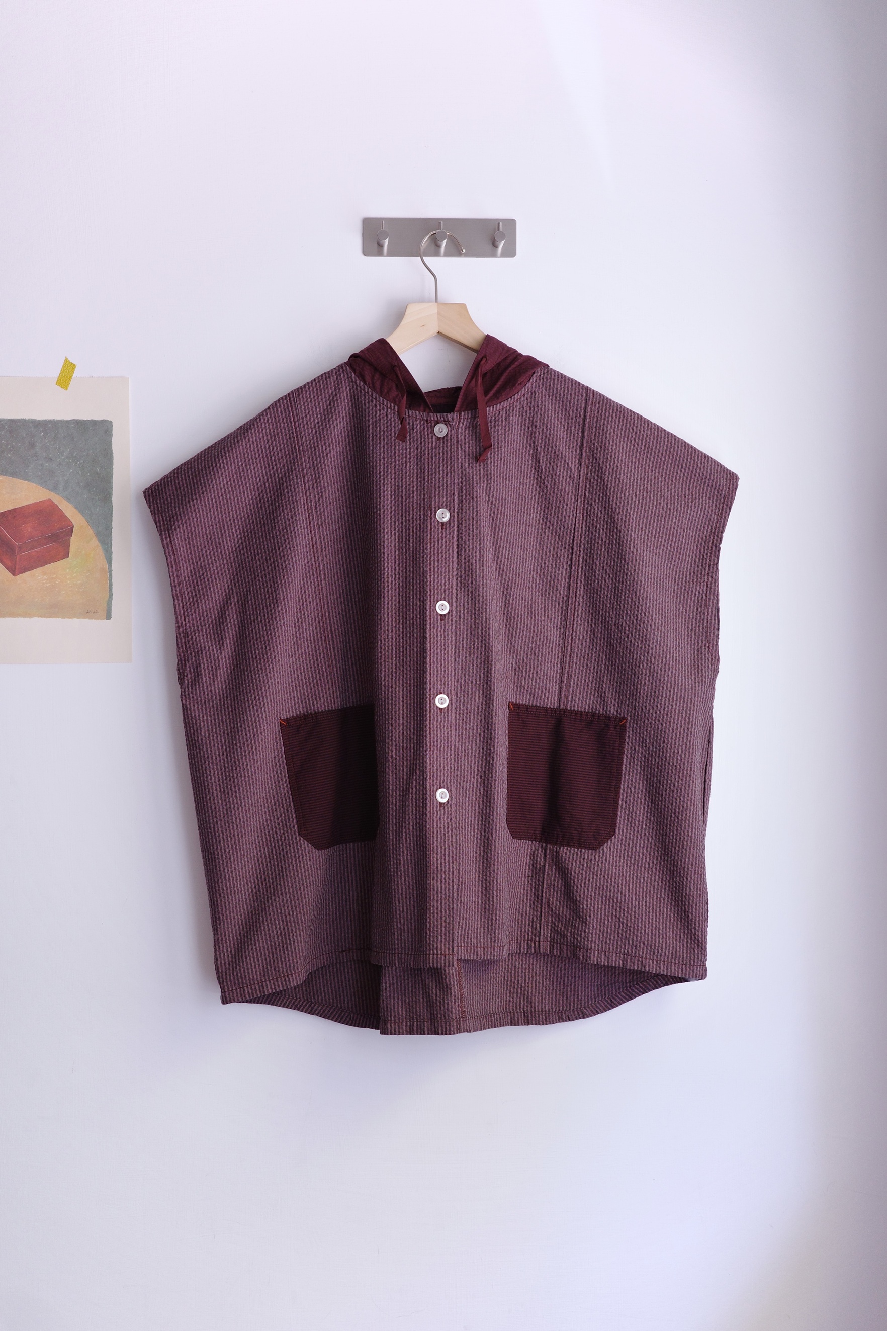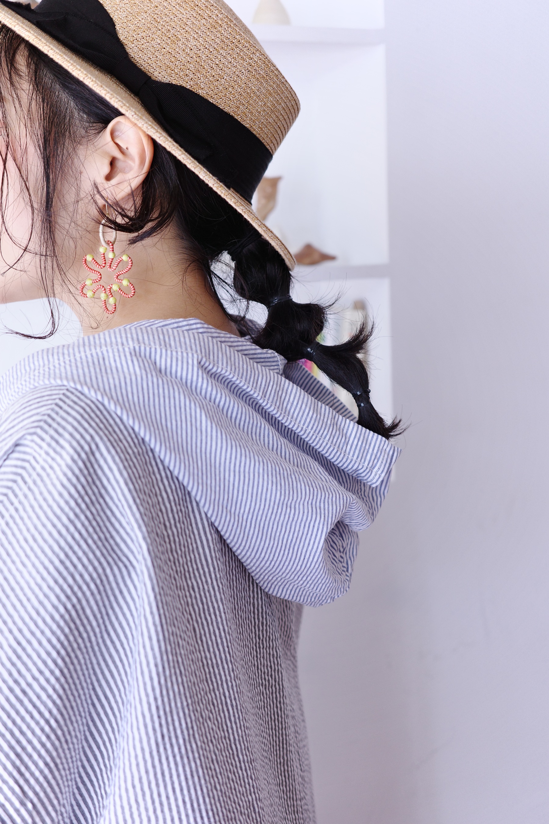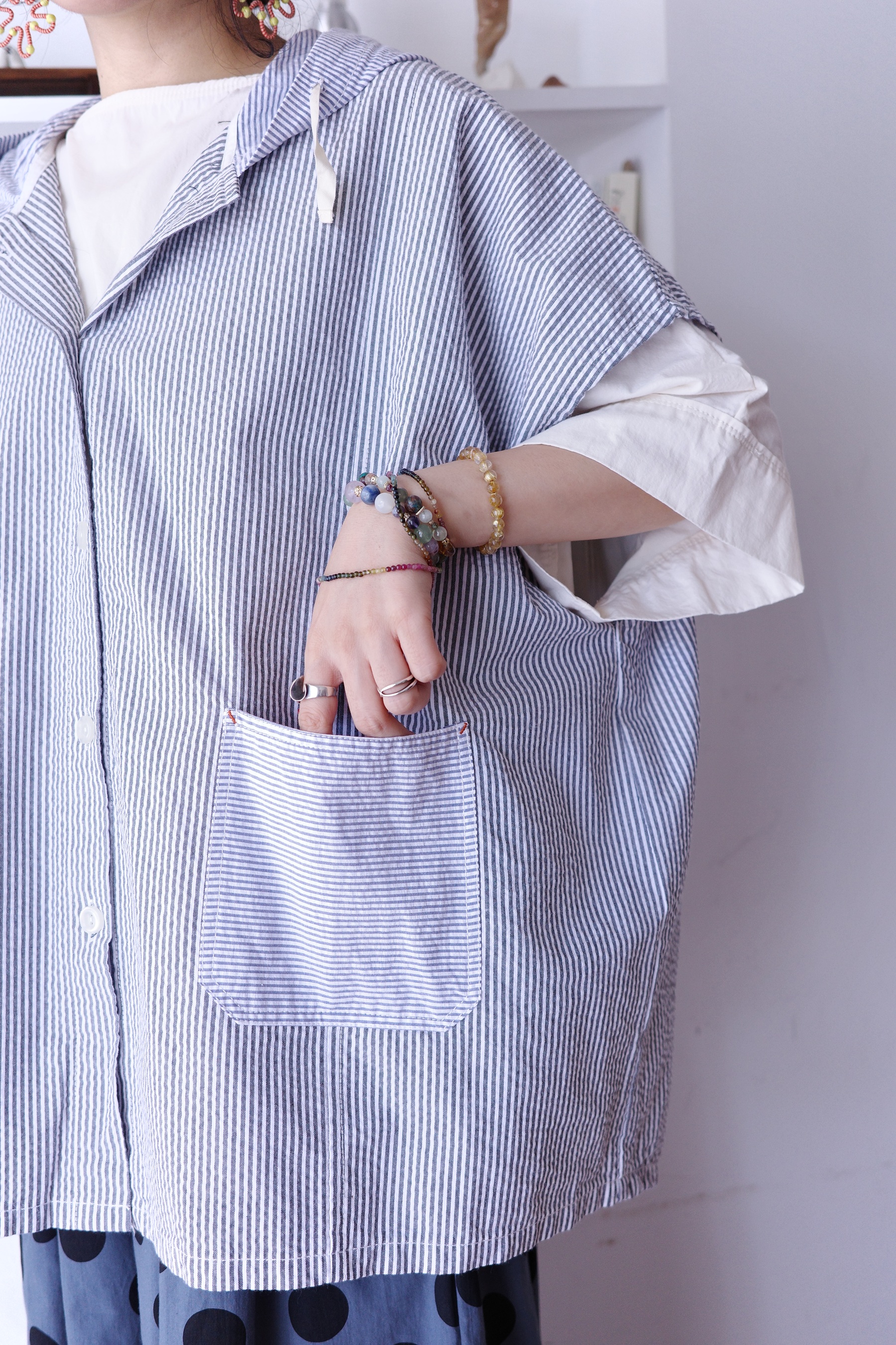 舒適有挺度的布料,利用各種直紋布拼接堆疊層次。